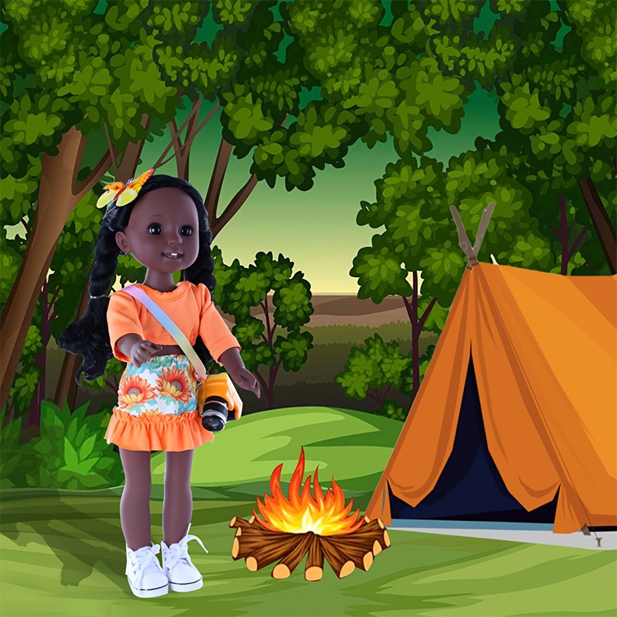 10 Pieces Set of 15 Inch African American Dolls with Accessories: Clothes, Phone, Camera, Glasses, Shoes, Hair Clips, Roller Pen Knife